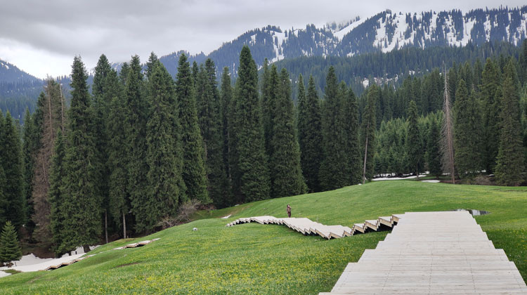 喀峰大本营:在这里可以遥望喀班巴依峰,天然大氧吧,雪岭云杉,往南自驾可以到达齐梦德观景台,可以看到高耸的雪峰。