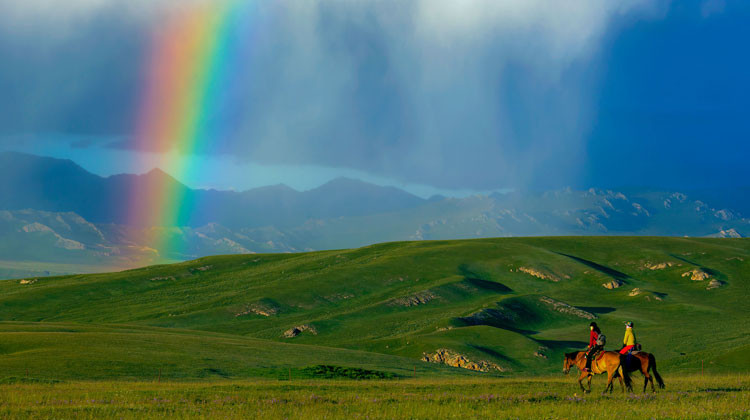 D2那拉提空中草原-那拉提旅拍-那拉提(约20KM 约1小时) 览天空秘境可策马奔腾白云与河流相衬邂逅养蜂女观毡房星星点点草原旅拍