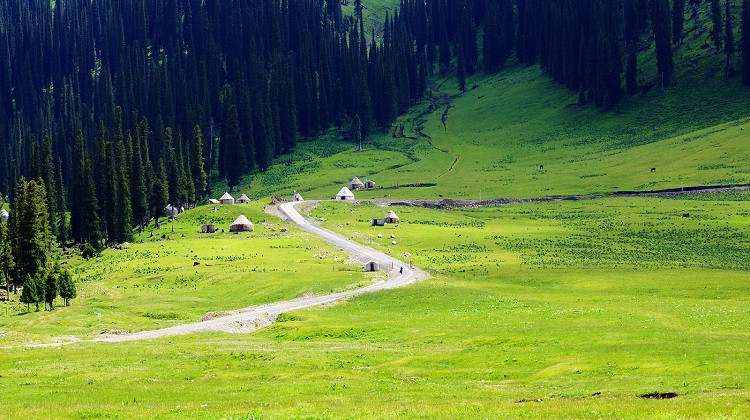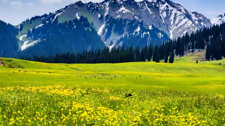 顺着伊犁河、巩乃斯河,车行在公路上,前往库尔德宁,伊犁河谷牧场,远处的牛羊点点,塞外江南此刻就在您的眼前。