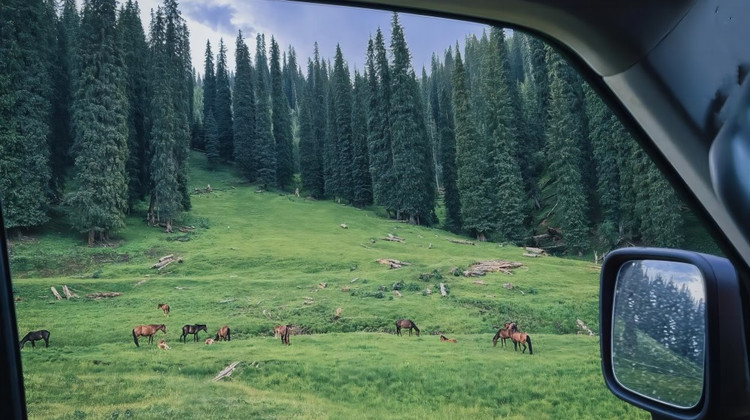 乘车前往天山天池,沿着S21沙漠公路前往阿勒泰地区