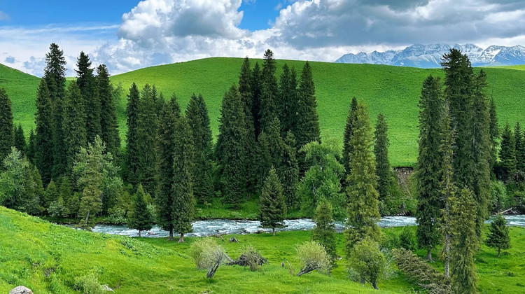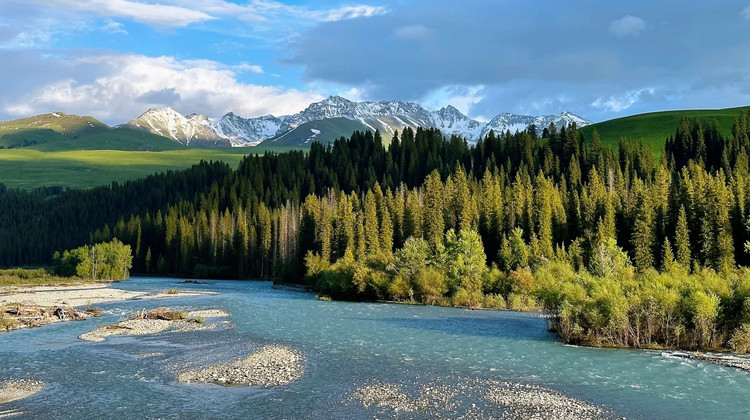 乘车前往唐布拉百里游览(唐布拉百里画廊是尼勒克和乔尔玛之间沿着喀什河边的一整段公路(免费),沿途有很多景点(有些收费,有些免费),路上也有很多美景、观景台,可停车下来拍照,全程102公里)。