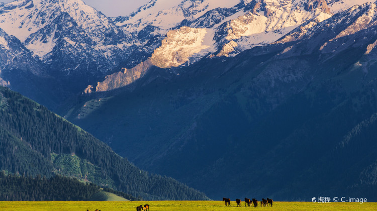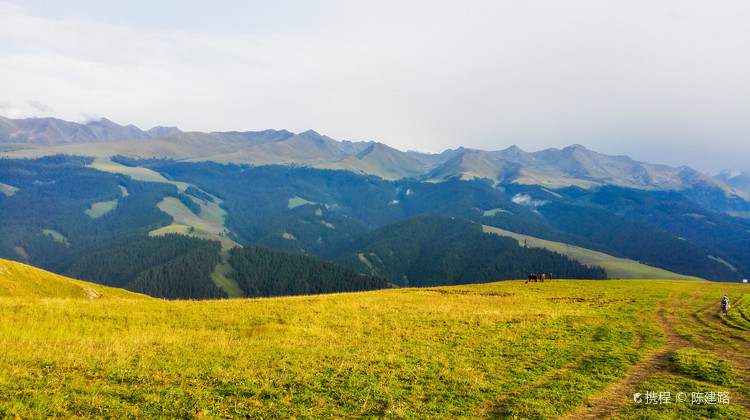 沿着昭苏草原前往夏塔景区,沿途风光迷人,可以随时停车拍照。