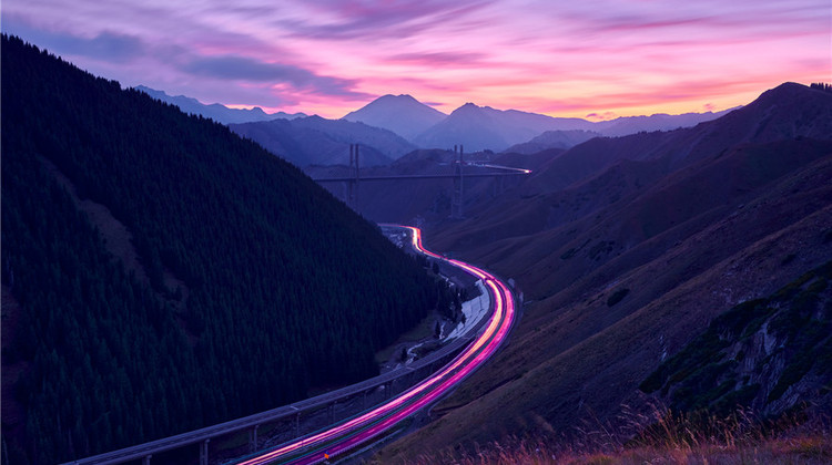 晚餐结束后乘车前往果子沟大桥